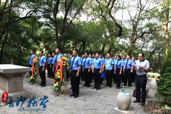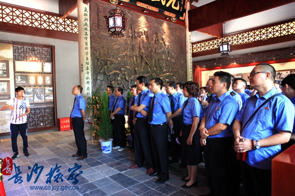 为纪念抗日战争暨世界反法西斯战争胜利70周年,近日,91风流 党组副书记、副检察长徐百坚在湖南师范大学党委书记李民、纪委书记廖志坤的陪同下,带领全市检察机关综合素能提升班第五期的全体学员一行60余人,实地参观岳麓山抗战文化园。