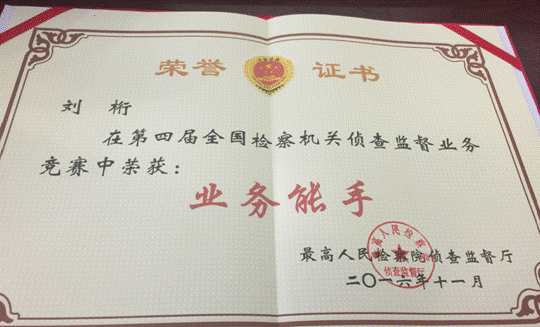 芙蓉区检察院侦查监督科检察员刘桁经过层层选拔,代表湖南省参加此次业务竞赛, 通过侦查监督实际能力考察、侦查监督实务笔试、侦查监督业务答辩三个环节的比拼,最终以总分第21名获“全国检察机关侦查监督业务竞赛业务能手”称号。