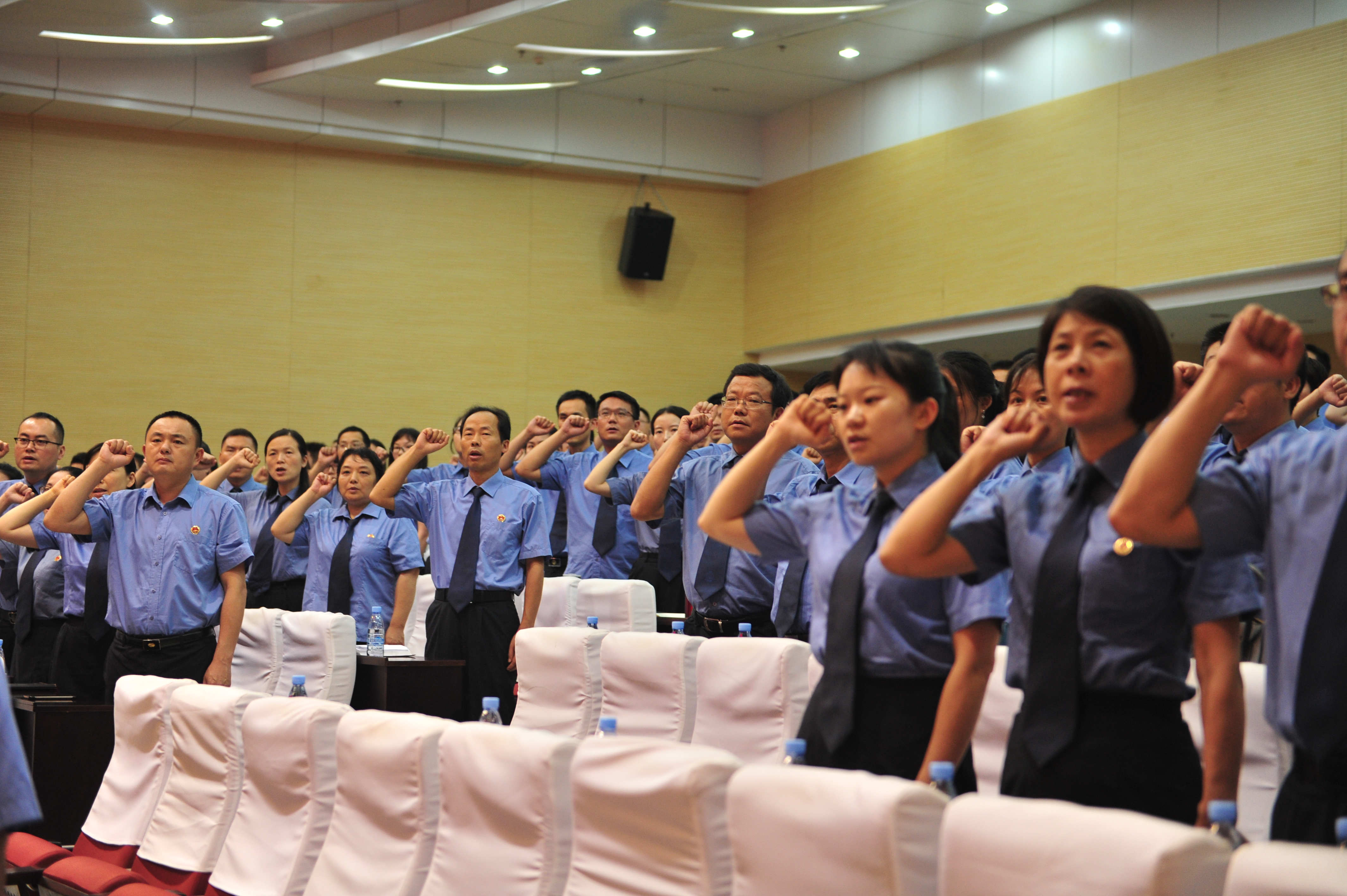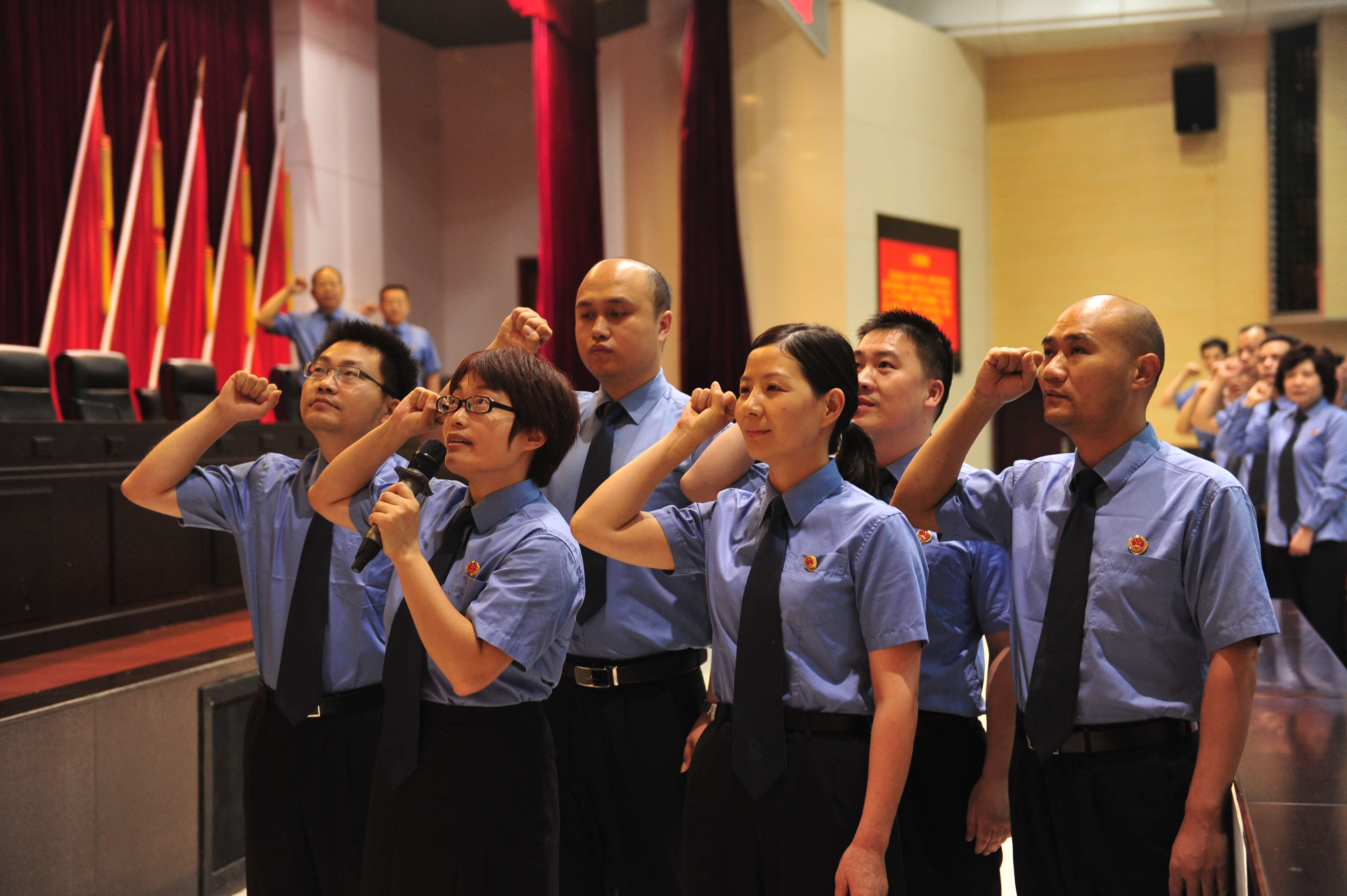 大会进行了市检机关全体检察人员奏(唱)国歌,新党员宣誓、老党员重温入党誓词活动。