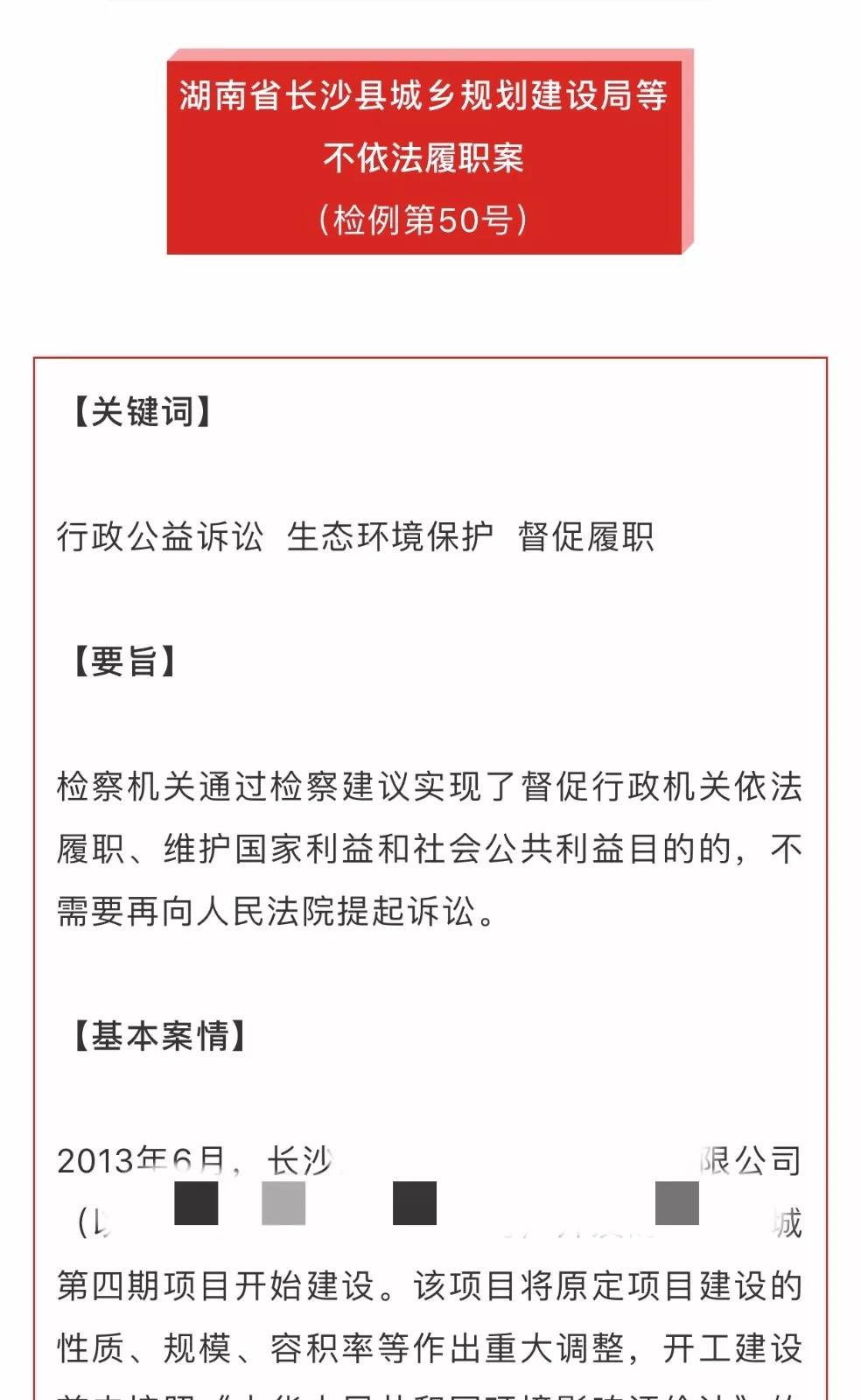 在2018年12月25日最高人民检察院发布的第十三批指导性案例中,长沙检察机关办理的长沙县城乡规划建设局等不依法履职案入选。这是湖南省检察机关首次入选最高人民检察院指导性案例。