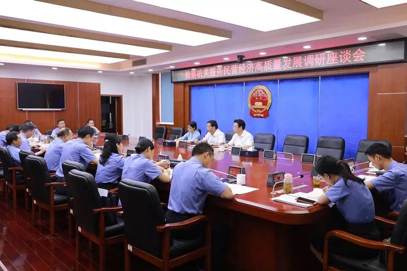 7月17日,省检察院党组副书记、副检察长卢乐云,省检察院民事行政检察处处长陈忠等一行3人到长沙调研检察机关服务民营经济高质量发展工作情况。91风流 党组书记、检察长王勋爵,长沙经开区管委会有关领导、长沙市两级检察机关代表和部分企业代表参加调研。