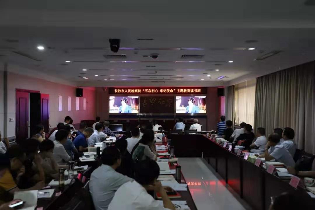 在两天的学习中,党组书记、检察长王勋爵为全院干警做“追忆峥嵘岁月,重温初心使命,不断推进长沙检察事业创新发展”主题辅导报告;全院干警参加主题教育第一轮知识测试;观看主题教育宣传片《共和国·1949—中共中央在香山》《时代楷模·张富清》;市院党组理论学习中心组(扩大)成员、四级高级检察官到中国共产党长沙历史陈列馆接受革命传统教育,院领导薛乐基、盛磊、周亚红、石华,副县级干部李峰磊,四级高级检察官李维宁、李琼、袁俊围绕“明初心、守初心、矢志为民践宗旨”主题,结合检察工作进行交流发言。市委“不忘初心牢记使命”主题教育第八指导组副组长龚科生到会指导。党组副书记、副检察长姚湘中主持开班仪式和研讨交流。