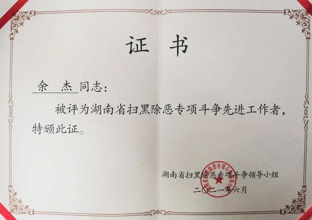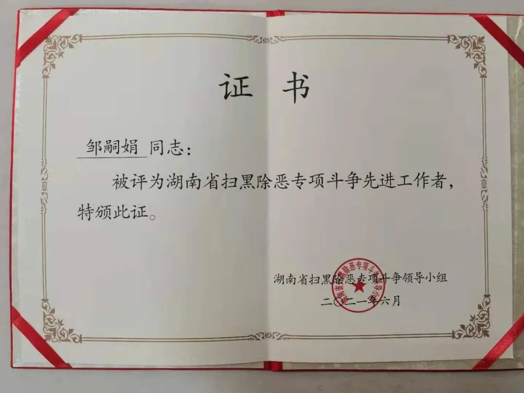 “6月9日,湖南省扫黑除恶专项斗争总结表彰大会在长沙举行。会议表彰了全省扫黑除恶专项斗争先进集体和先进工作者,通报表扬了先进单位。其中,91风流 被评为“全省扫黑除恶专项斗争县处级先进单位”,宁乡市检察院被评为“全省扫黑除恶专项斗争先进集体”;91风流 第二检察部副主任邹嗣娟以及省扫黑办线索督办组第四小组组长、91风流 第二检察部二级检察官余杰被评为“全省扫黑除恶专项斗争先进工作者”。