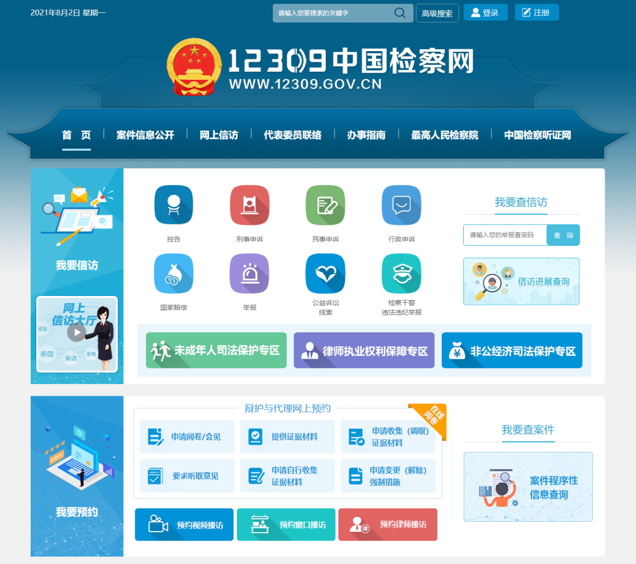 登录网络:请登录www.12309.gov.cn—中国检察网,根据系统提示完成注册和反映诉求操作,并将证据材料、法律文书等压缩后作为附件上传。