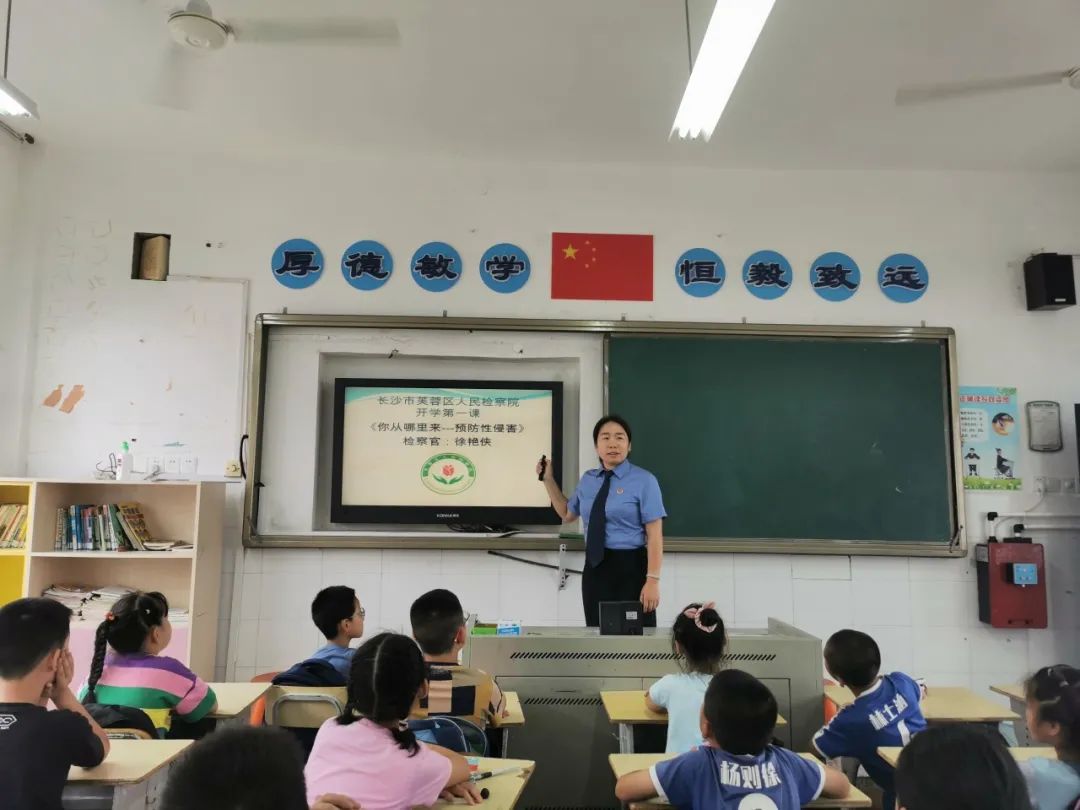 9月4日,芙蓉区检察院“芙蓉花蕾”工作室员额检察官徐艳侠作为长沙市芙蓉区东郡小学法治副校长,结合郑渊洁性教育绘本和相关案例,为该校50余名四年级学生讲授了一堂生动活泼的《<你从哪里来>——远离性侵害》法治课。