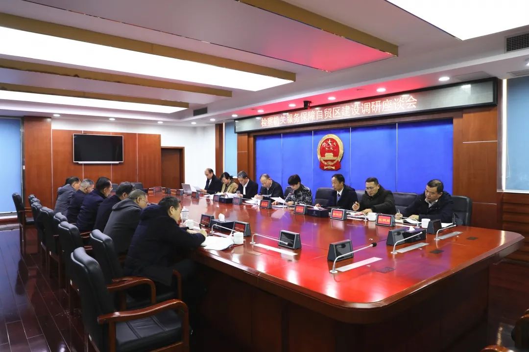 调研走访之后,王勋爵检察长与芙蓉区检察院检察长王均全、雨花区检察院检察长马贤兴、长沙县检察院检察长盛智以及随行相关负责同志进行座谈,围绕长沙片区建设过程中遇到的法律问题以及对检察机关服务保障自贸区建设的司法需求等,进行了深入交流和探讨。