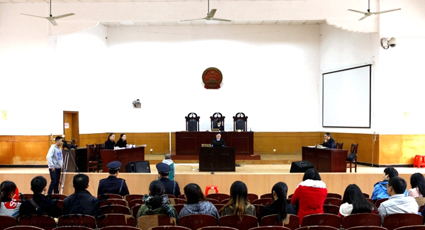庭审过程中,公诉人通过法庭调查、举证质证、法庭辩论等诉讼环节证明了被告人的犯罪事实,详细论述了被告人唐某某的犯罪构成,深入分析了其走向犯罪的原因,并发表了公诉意见,对被告人开展了法制教育,给旁听的师生们极大的震撼。