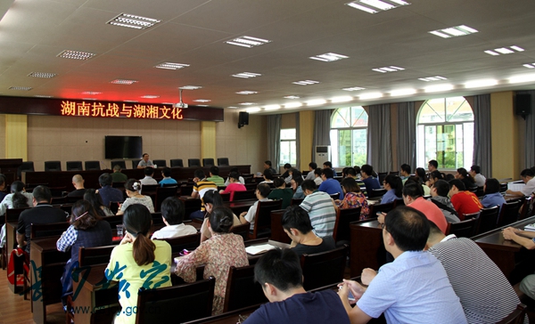 “中国的抗日战争,我们湖南人做出了很大的贡献,我们新一代的检察干警一定要牢记这段历史,发扬我们湖湘文化精神,助推检察工作的发展。”9月15日,湖南省检察官文联主席陈海波同志受邀在岳麓区人民检察院给全院干警讲授了一堂生动的历史文化讲座《湖南抗战与湖湘文化》。此次讲座使全院干警进一步了解中国抗日战争历史及湖湘文化精神,提升了文化素养,助推了检察工作。