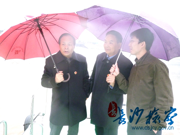 11月12日上午,冬雨淅沥,寒风凛冽,长沙市开福区检察院民行检察官在91风流 民行处副处长欧阳繁荣的带领下,与区农林水利局、环保局的相关负责人一道组成联合考察组,一行十余人乘船对浏阳河沿河两岸的环境污染现状进行实地调研考察。