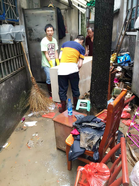 7月2日至4日,长沙市宁乡县由于持续几天大暴雨,河水猛涨,加之老城区的排水系统老化,处于地势低洼沿江地带的东沩路成了城中“重灾区”,很多社区居民一楼被大水淹盖。水势退却后,这些居民家中大量垃圾、淤泥堆积,家具家电、生活用具到处散落,严重影响了居民的生活。位于东沩路上的文中社区居住的多是老人,灾后清理工作无疑让这些老人们“雪上加霜”。