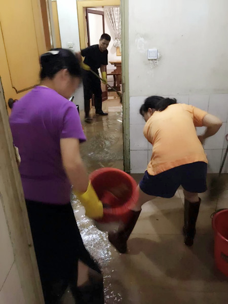 得知情况后,宁乡县检察院团支部迅速组织院内青年志愿者们来到文中社区,帮助老人们开展灾后清理工作。到达社区后,志愿者们分成4个小组分散至社区各个受灾最严重,家中又无劳动力的老人家中。为他们搬出家具家电,清扫、冲刷地面淤泥,疏通家中的地下管道,并用消毒水喷洒四周。