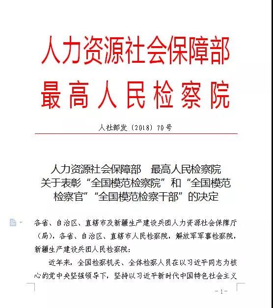 人力资源社会保障部、最高人民检察院作出表彰决定,湖南省长沙县人民检察院被授予“全国模范检察院”这一全国检察机关最高荣誉,也是湖南省本届唯一获此殊荣的检察院。