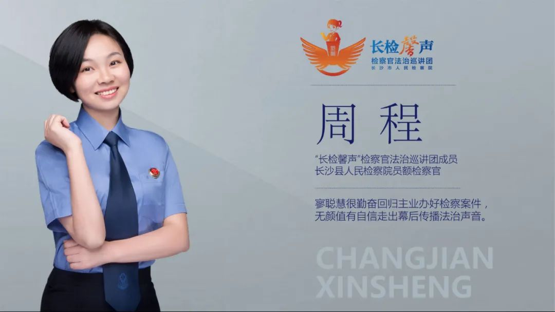 周程不仅本职工作出色,还积极投身公共事务,组织能力强、在青年中有号召力。作为院青工委主任,她负责青年队伍建设和检察文化建设,为该院争创全国模范检察院、全省文明标兵单位等荣誉作出重要贡献。她以党建融合业务的理念组织该院22名青年组成“星检说”普法宣讲团,深入学校、社区、农村、企业等开展线上、线下宣讲二十余次,以案释法稿件被新华网、法治日报、检察日报、湖南日报等主流媒体采纳100余篇。“星检说”工作增强了检察青年社会责任感和为民情怀,为长沙县基层社会治理贡献了检察力量,被评为县2020年度基层社会治理“十佳”案例。