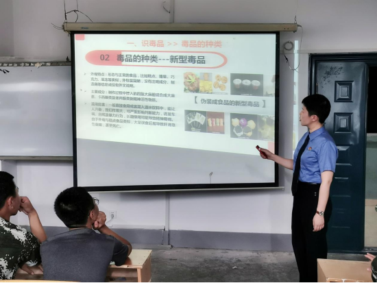 黄婷结合国内外和湖南省毒情形势,通过播放视频、答题互动、讲解真实案例等方式,从识毒品、看毒情、知毒危、防毒诱、拒毒害等五个方面,对禁毒工作进行全方位讲解。授课结束后,带队老师向授课检察官表示感谢并向全体学生发出号召,希望现场参加禁毒教育法治课的同学回去后在各自班级群内向其他同学宣传本次禁毒教育开学第一课活动所学到的禁毒知识,全面提高识毒、防毒、拒毒的意识和能力。