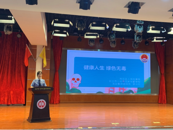 最后,黄婷向全体师生发出“不轻视、不好奇、不沾毒”的“三不”微倡议,号召大家关注“中国禁毒”和“湖南禁毒”微信公众号学习和宣传禁毒知识,让理想照亮未来,用“绿色无毒”书写“健康人生”!