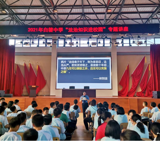 9月15日下午,望城区检察院第二检察部副主任龚琳一行来到望城区白箬铺中学开展“开学第一课—禁毒教育进校园”专项活动,为家长和同学们上好开学第一课。