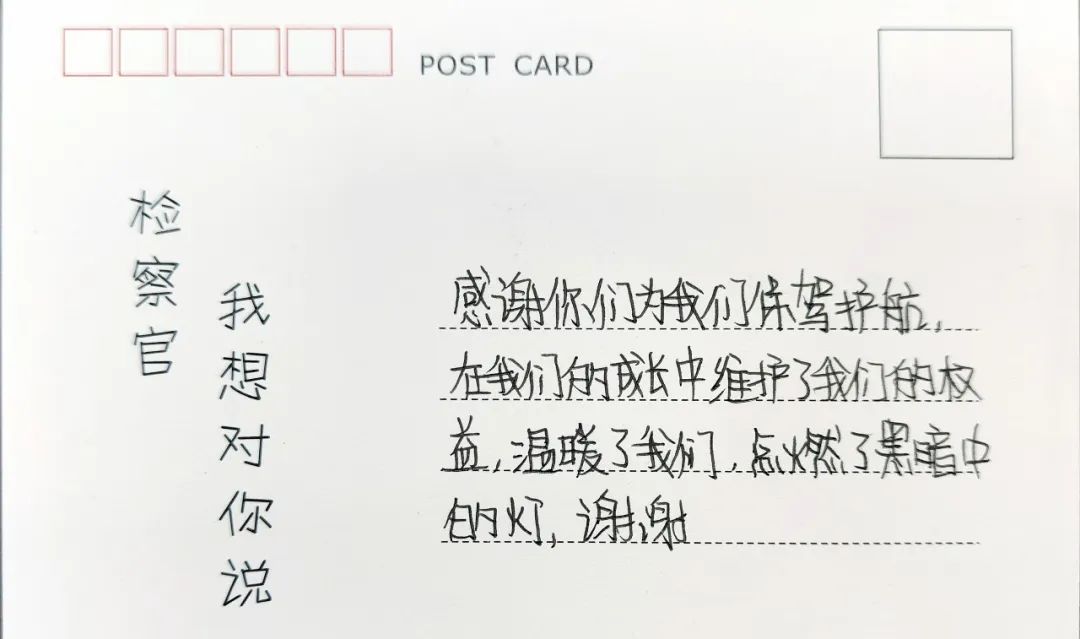在这堂专门为孩子们准备的法治课中,两位检察官用通俗易懂的“童言童语”,告诉孩子们如何甄别意图不轨的“坏人”,提高警惕加强自我防范;利用PPT制作卡通动漫图,教会同学们分辨什么是身体接触类的性侵害、什么是非接触类的性侵害;以及一旦遭遇性侵害后如何应对、如何关怀遭遇了性侵害的同伴等等。深入浅出地讲解授课,让严肃的防范性侵害教育扎根进了孩子们的心里。课后,同学们纷纷以卡片的形式分享了自己的学习感受、表示了对检察官“老师”的感谢。