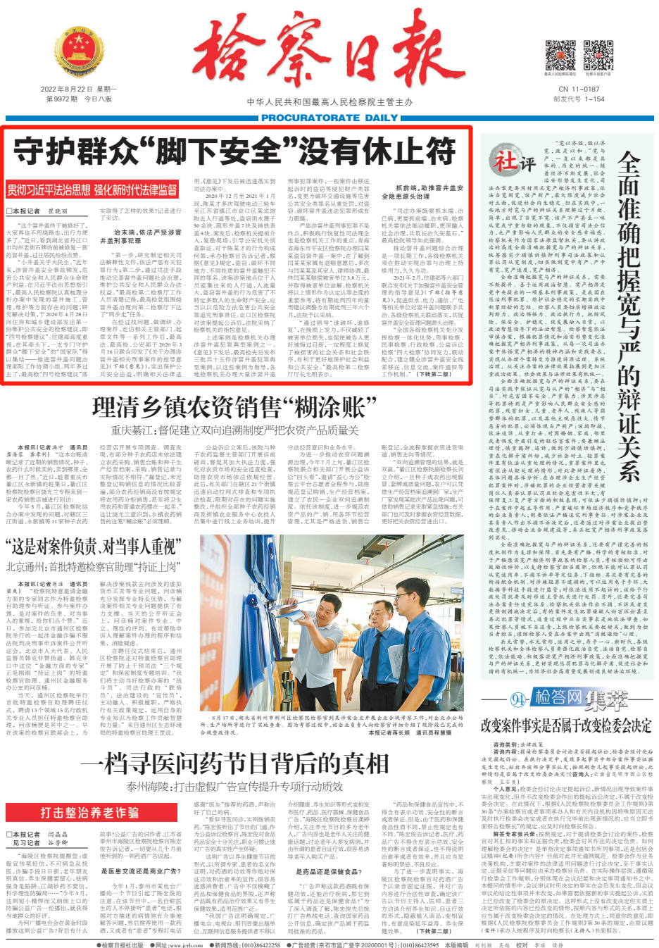 ∆ 2022年8月22日《检察日报》第01版:要闻