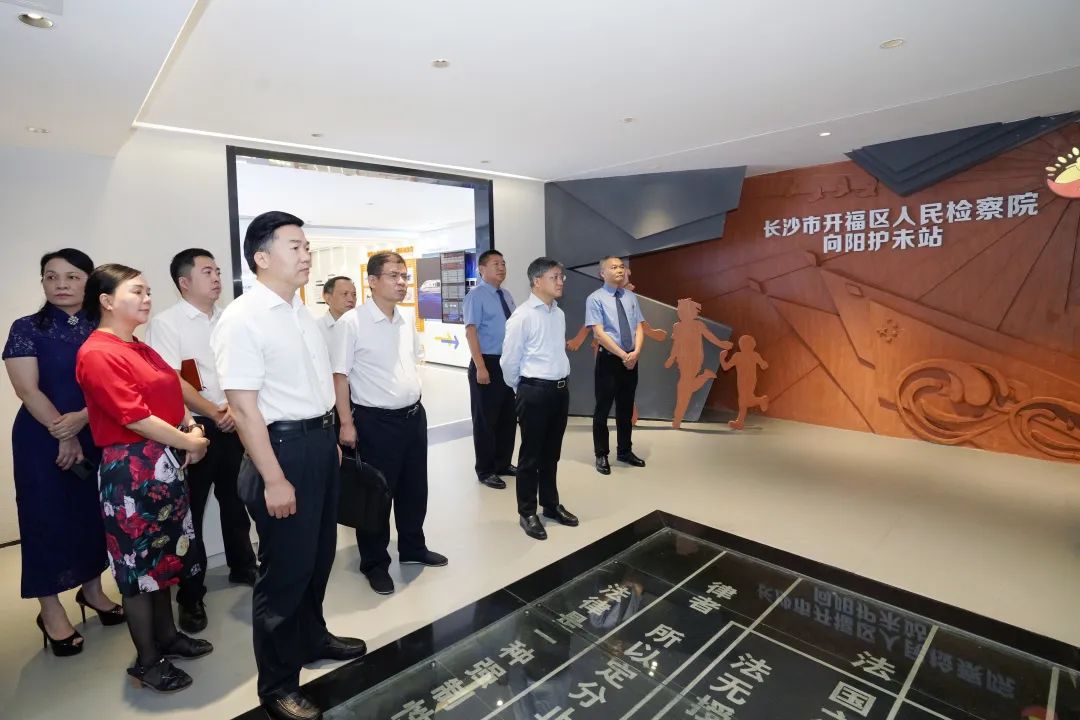 胡旭晟一行首先参观了开福区检察院“向阳护未站”,详细了解了未成年人刑事检察工作制度、未检案件办理程序以及近年来该院未检工作情况。