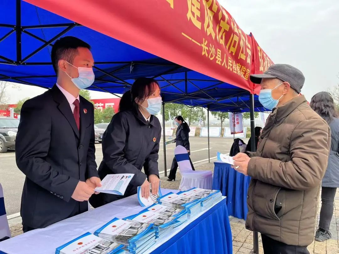 12月9日上午,长沙县检察院在田汉文化园参加湖南省省会各界人士礼敬宪法暨2022年全省宪法宣传周主场活动。活动当天,该院还在田汉文化园停车坪设置普法展位,开展法律咨询、法治宣传等集中普法活动。检察人员向果园镇群众发放了宣传手册等普法资料,介绍宪法有关知识,并热情帮助群众现场解答关于法律方面的疑难问题,在贴心细致的普法服务中落实“谁执法谁普法”责任,受到当地群众欢迎。