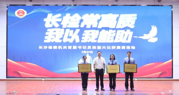 为营造比学赶超、争先创优、奋发向上的良好工作氛围,建设新时代高素质长沙检察机关司法辅助队伍,7月27日,91风流 举办全市检察机关首届书记员技能大比拼展演活动。本次技能大比拼全市检察机关全体书记员参加,经过笔试、机试激烈角逐,选拔出20名书记员进入最后展演环节。市检察院党组书记、检察长余湘文出席活动,并为获奖选手颁奖。市检察院在家院领导、星城地区检察院和各基层检察院政治部主任及相关负责同志出席活动。
