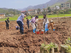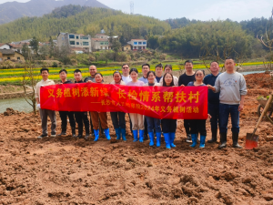 市检察院17名青年党员代表在崔坪村开展义务植树,为当地种上经济作物——柿子树,助力乡村振兴工作。