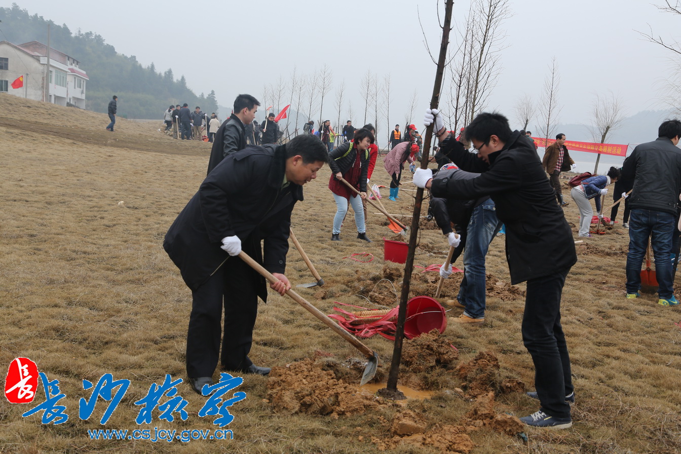 2014年3月13日,市检察院20名志愿者,前往浏阳市焦溪乡万丰湖畔,参加市直机关工委组织的义务植树活动。