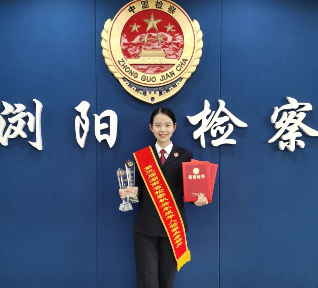 从检五年以来,她先后获得湖南省检察机关优秀公诉微课作品奖、湖南省检察机关征文比赛三等奖、长沙市检察机关公诉人团体辩论赛“十佳辩手”、长沙检察机关“优秀公诉人”、长沙市检察机关未成年人检察业务竞赛“业务标兵”、浏阳市直机关党员干部演讲比赛“二等奖”、长沙市检察机关青年演说会展演活动“二等奖”等荣誉。参与编写湖南省检察院组织主编的《未成年人刑事案件捕诉操作指引》,并荣获三次嘉奖。