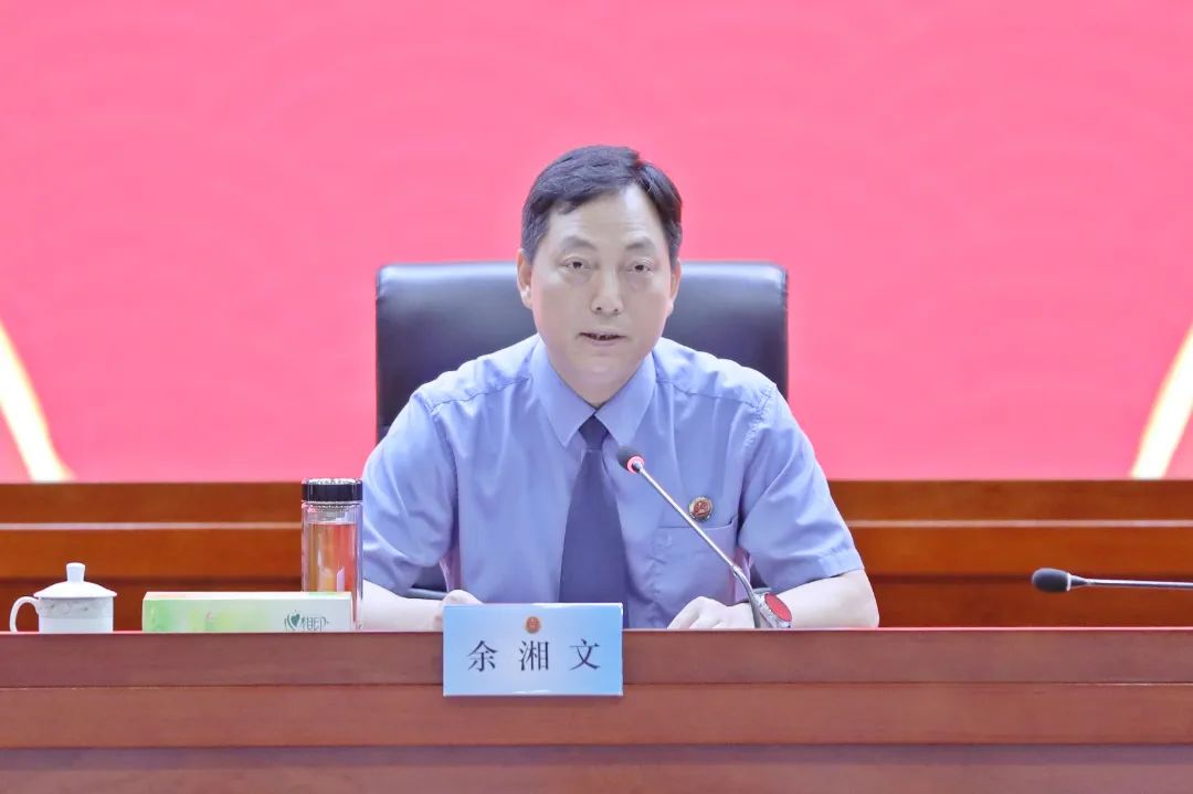 余湘文检察长首先向市人大及其常委会、人大代表一直以来对检察工作的重视、关心、支持和监督表示衷心的感谢。他强调,全体检察人员要提高政治站位,深刻认识开展述职评议工作的重大意义。市人大常委会组织对员额检察官履职情况进行评议,既是依法履行人大监督职责、促进公正司法的重要举措,也是市人大常委会重视支持检察工作、关心厚爱检察干警的具体表现。按照司法责任制改革“责权利”相统一的原则,检察官应该承担更重责任,受到更严监督,接受更细考核,这有利于检察干警提高执法办案水平和能力,有利于推动长沙检察事业高质量发展。他要求,要深化责任落实,上下一盘棋高质效开展好述职评议工作,把科学评议落到实处,把好审核关,确保检察官获得公平公正、全面真实的评价。要注重考核实效,把述职评议工作的成果运用到实际中去,更好地融入到检察官年度业绩考评中,切实发挥出考核“风向标”“指挥棒”作用,激励全市检察干警积极作为,为全面建设现代化新长沙贡献出更大的检察力量,以优异成绩迎接党的二十大胜利召开。