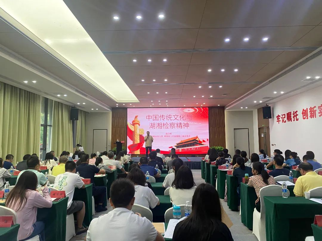 湖南省检察院二级巡视员、原政治部宣教处处长饶力明作《检察文化》专题授课。