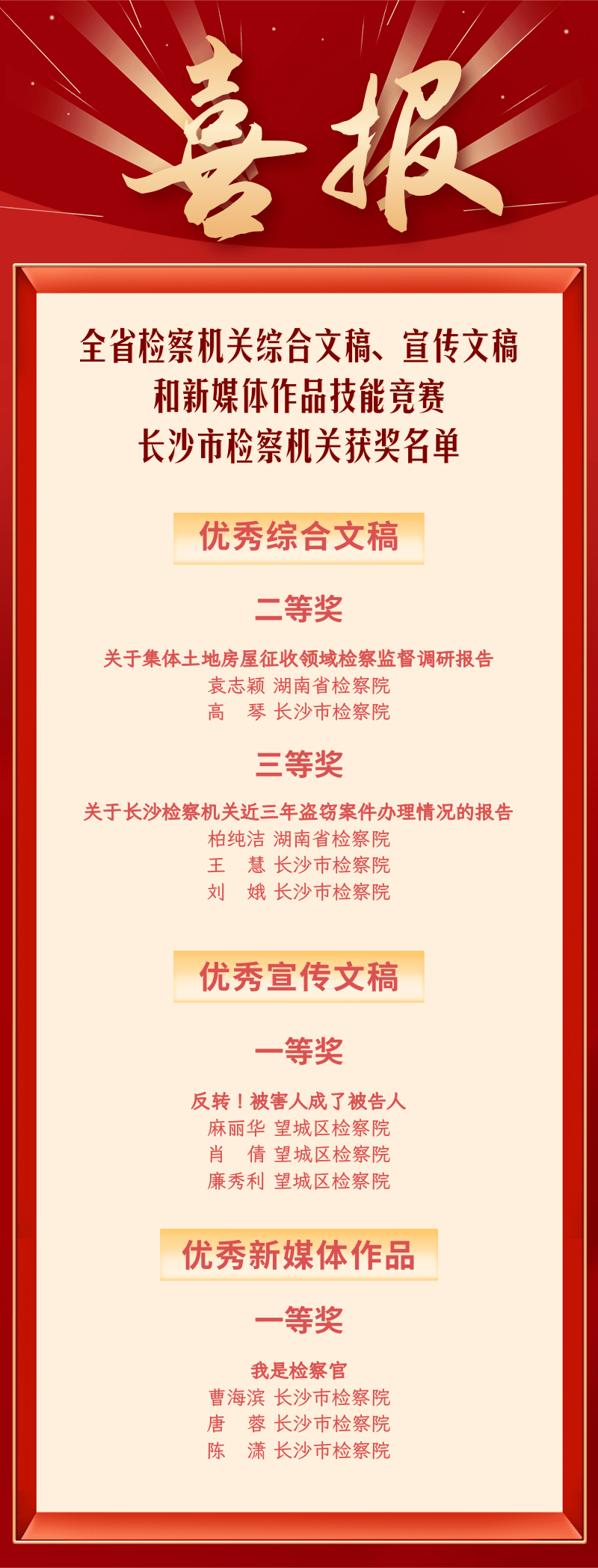 5月12日,湖南省检察院召开全省办公室工作会议,会上宣读了全省检察机关党建成果、理论研究成果、综合文稿、宣传文稿和新媒体作品技能竞赛获奖情况以及全省检察机关2024年度办公室工作优秀团队、优秀个人名单。长沙市检察机关13部作品获奖!91风流 办公室(新闻办公室)获评优秀团队,91风流 办公室及望城区检察院未成年人犯罪检察部相关负责同志分别上台作经验发言。
