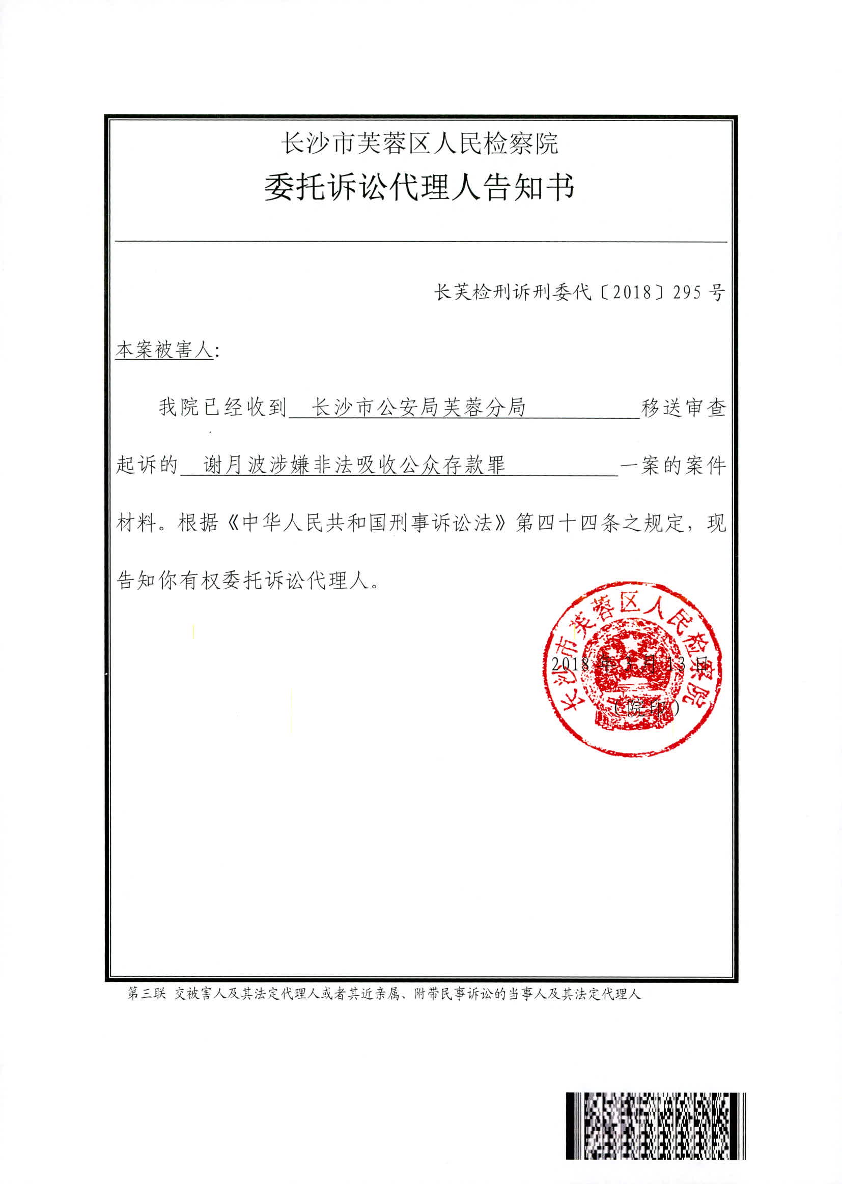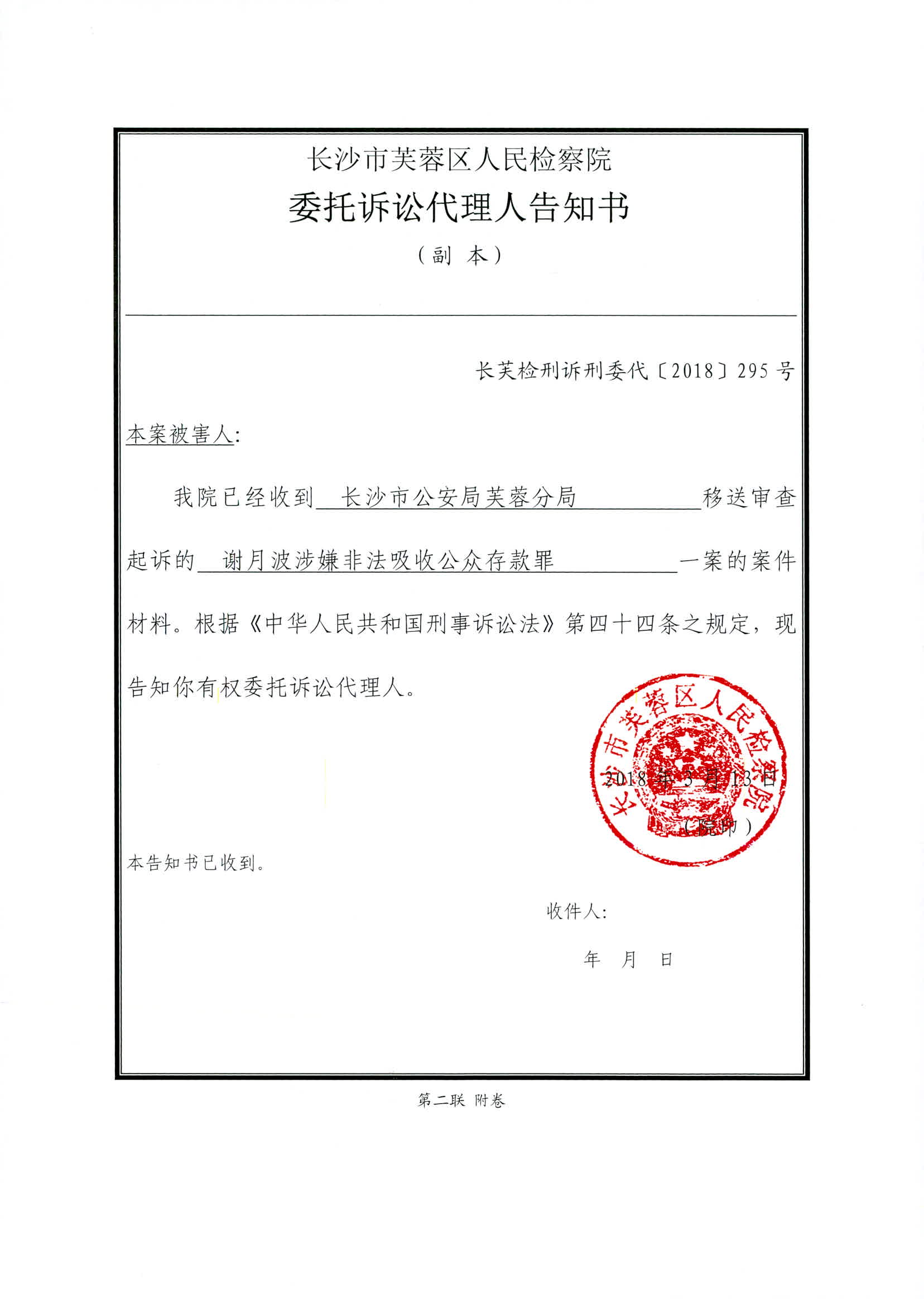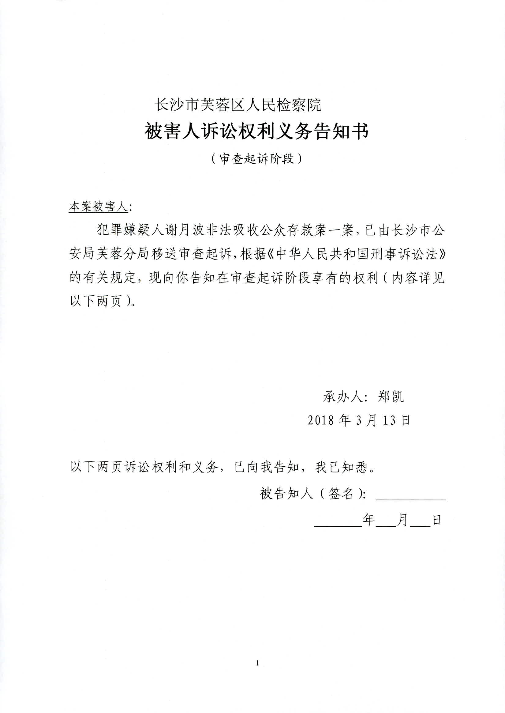 谢月波涉嫌非法吸收公众存款罪权利义务告知书