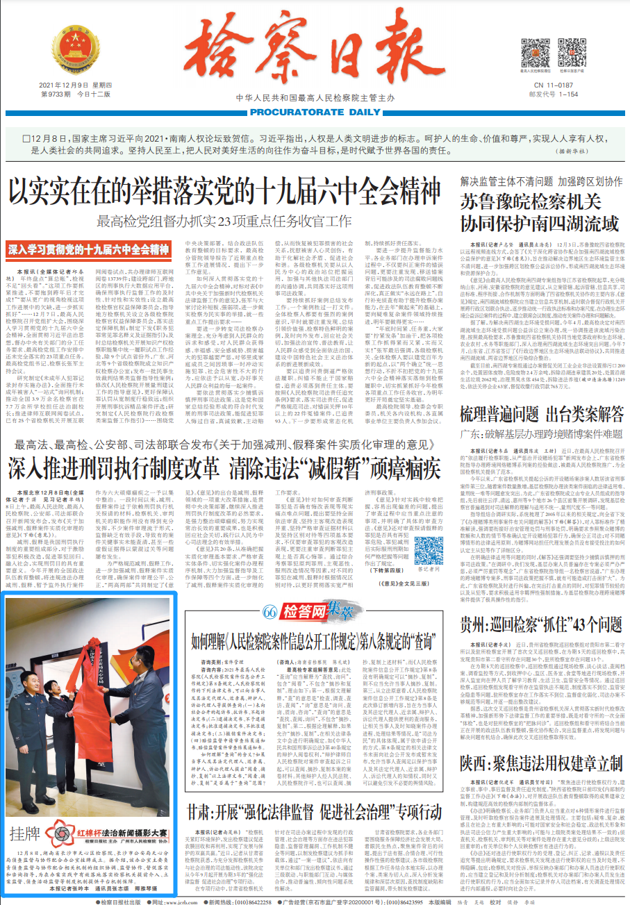 ∆ 2021年12月9日《检察日报》第01版:要闻