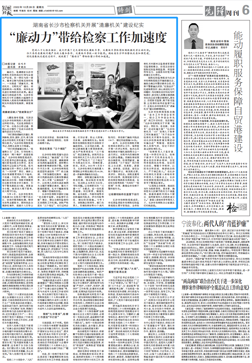 △ 2022年10月28日 《检察日报》第06版:先锋周刊·铸剑