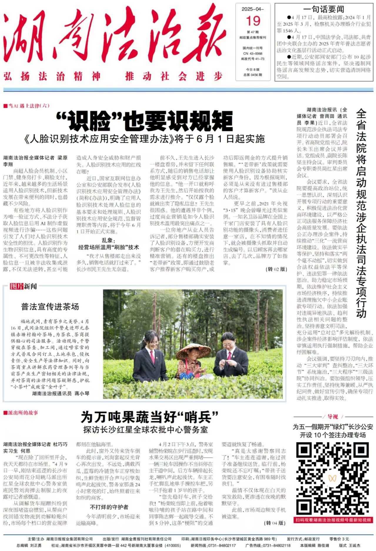 ∆2025年4月19日《湖南法治报》头版头条