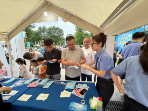 “芙”检聚力,心心向“蓉”~“真是看着容易,做起来难,不仅要协同配合还要精准传递,也形象地告诉我们毒品一旦沾染,要想摆脱可不是件容易的事情!”正在芙蓉区检察院摊位体验“筷抖毒瘾”游戏的“小哥哥”如是说。每个参与者要与检察官合作,持长筷接力夹住写有禁毒标语的乒乓球,从起点运到终点,也预示着检察联动群众,共同传递“全民禁毒”意识。