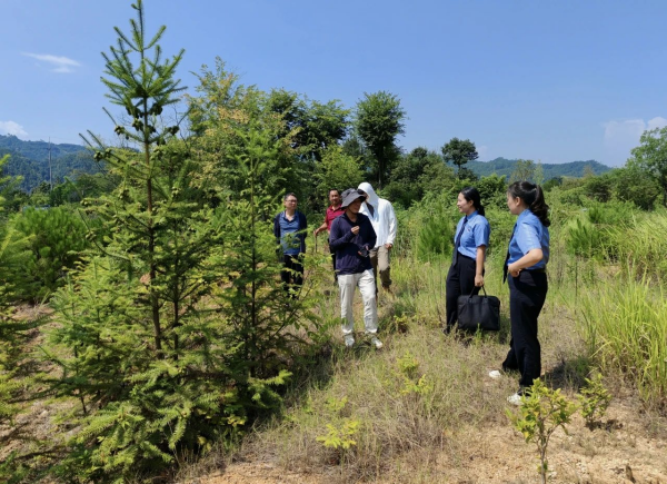 7月28日,湖南省浏阳市检察院检察官就一起滥伐林木案件实地查看补植复绿情况。