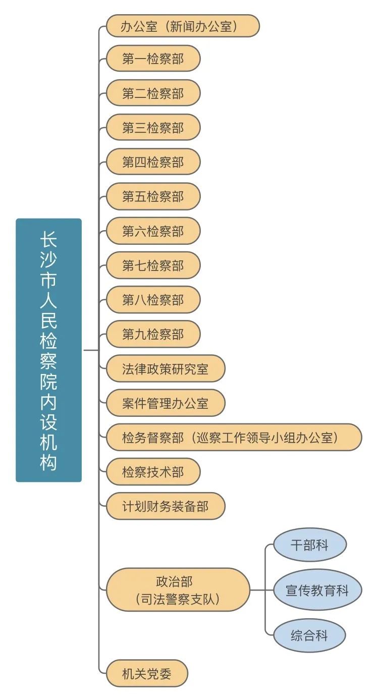 根据长沙经济发展以及长沙检察办案情况,因地制宜较省内其他市州院多设置2个左右内设机构。围绕满足当前社会对未成年人司法保护和维护司法公平公正的关切,单独设立了未成年人检察和司法人员职务犯罪侦查机构。为有效对接长沙知识产权保护大格局,特设全省唯一的知识产权检察部。