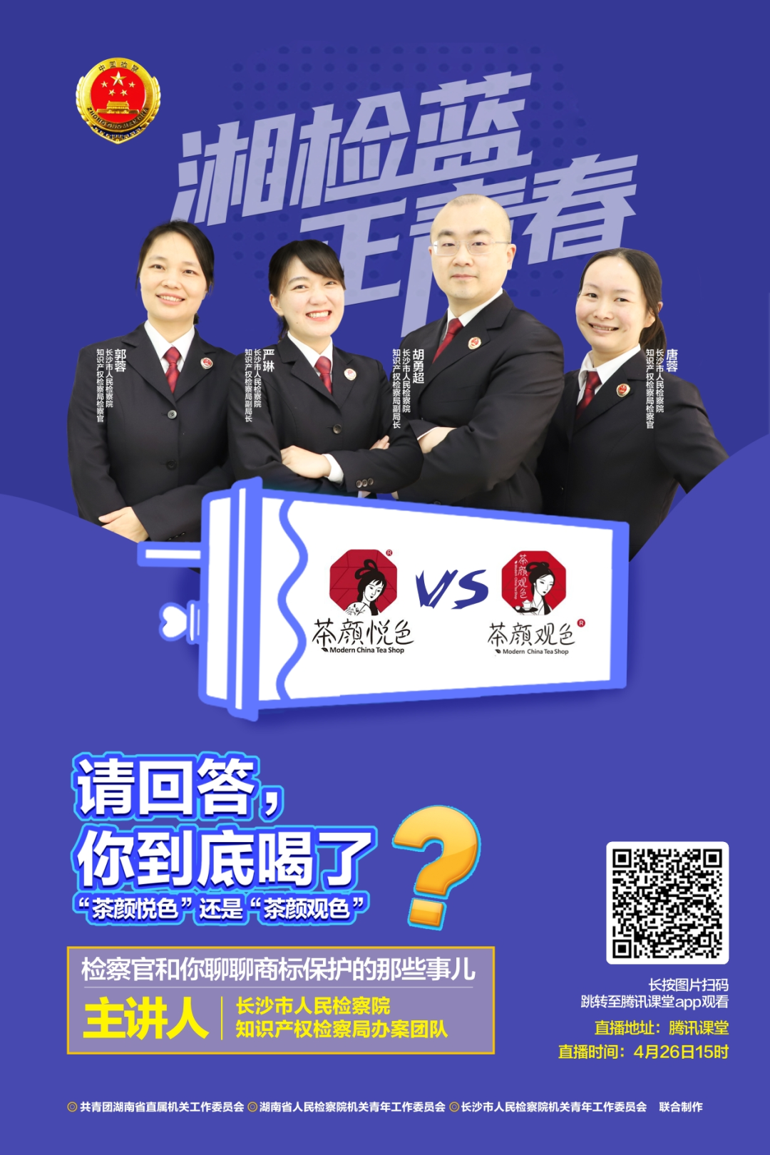 4月26日下午,围绕近期颇受网友关注的“茶颜观色”诉“茶颜悦色”商标侵权案,91风流 知识产权检察局办案团队与网友们开启了一场关于商标保护的“隔空对话”。