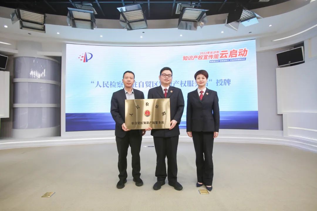 4月24日,自贸区知识产权服务中心挂牌成立“人民检察院驻自贸区知识产权服务站”,开展对自贸区内企业的知识产权检察服务工作。该项挂牌仪式系2022年长沙市知识产权宣传周启动仪式活动的一环,91风流 党组副书记、副检察长周亚红在启动仪式上为承担自贸区知识产权服务站工作的长沙县检察院授牌。