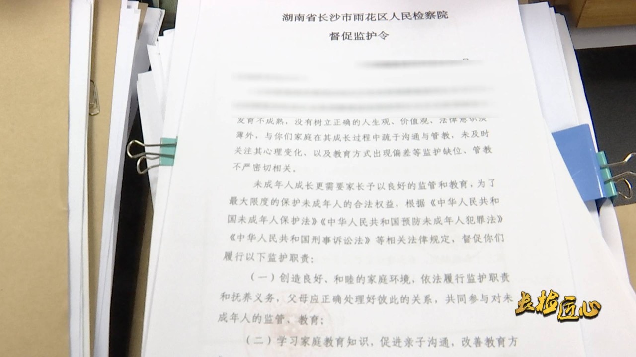 今年以来,雨花区检察院在办理涉未成年人案件中共发出督促监护令49份。在办案过程中,长沙检察机关依托详细的社会调查,了解未成年人的成长经历、犯罪原因和帮教条件,针对社会调查中反映的家庭监护不力、甚至缺位的问题,因案施策,制发“督促监护令”,督促监护人正确履行监护职责;同时联合妇联、社会机构等以线上线下相结合的方式做实家庭教育指导工作。