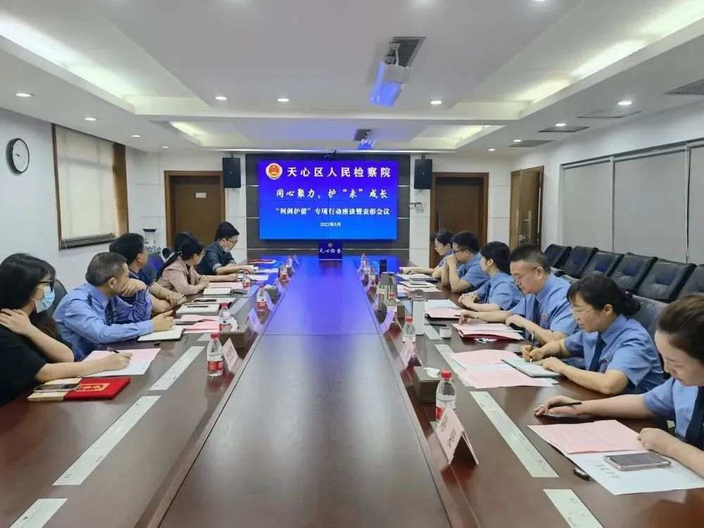 5月31日,长沙市天心区检察院召开了“同心聚力 护未成长”利剑护蕾专项行动座谈会,邀请区政法委、公安局、教育局、妇联等部门相关负责人参与会议。会上,通报了天心区检察院开展利剑护蕾专项行动的工作情况,会签了《关于奖励侵害未成年人犯罪线索举报人的若干意见》,并对辖区内履行强制报告效果突出的教职工、酒店工作人员予以表彰。通过奖惩机制的建立,进一步压实强制报告的主体责任,促进未成年人保护职责落到实处。