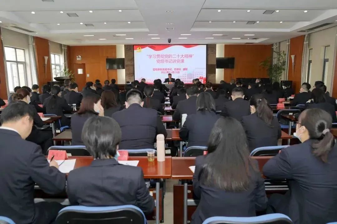 为全面准确领会党的二十大精神,11月21日,长沙市芙蓉区人民检察院党组书记、检察长盛智围绕深入学习宣传贯彻落实党的二十大精神为全体检察人员讲授专题党课。